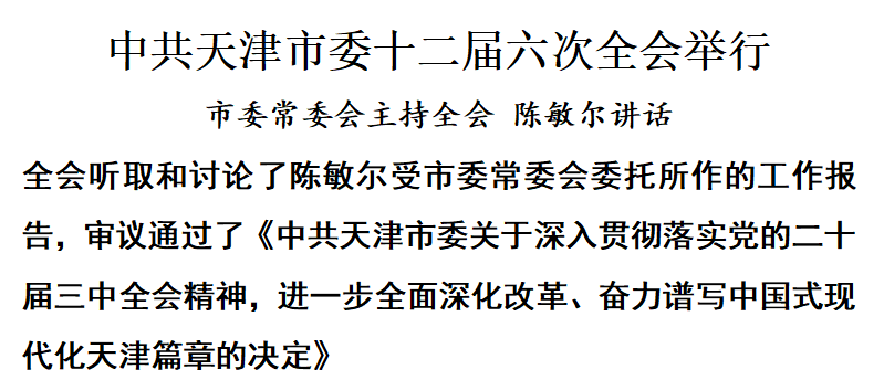 (2024年8月25日中国共产党天津市第十二届委员会第六次全体会议通过)
