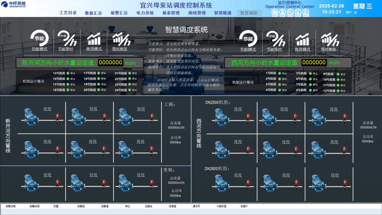 中环系统在接到改造工程任务后,本着为客户提质生产力、降本增效,全面推进“绿色低碳发展行动”目标,组织成立技术公关项目组,积极开展内部研讨,提出了以智能算法为核心,根据供水量自动匹配供水机组的智慧平台方案。该方案在保障供水安全的前提下,不仅大幅提升了水厂精细化管理水平和应对突发事件的能力,还增强了水厂的综合运营能力。不仅如此,中环系统还依据泵站生产流程,紧密结合实际运行需求,按照功能和类别,成功实现数字化生产管理、智慧化运行分析、信息化综合保障三大核心需求,为泵站高效运行筑牢坚实根基。